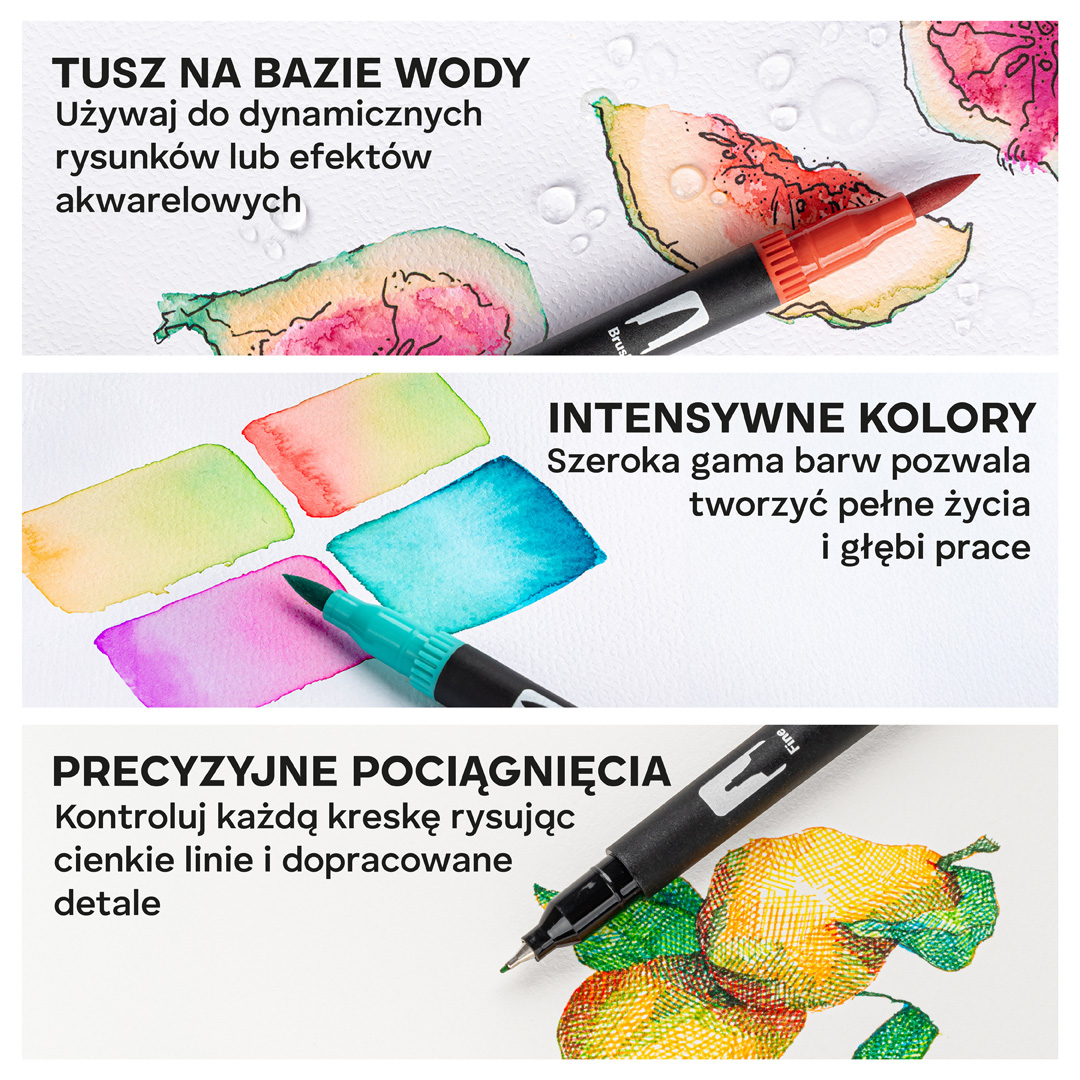 👉 Aby w pełni wykorzystać potencjał markerów, używaj ich na papierze przeznaczonym do akwareli lub o wyższej gramaturze. Pozwoli to na najlepszą kontrolę nad tuszem.